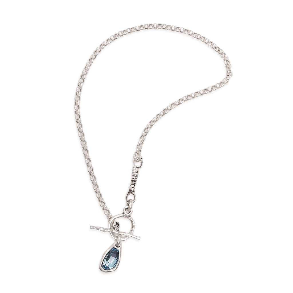 Stylish, Pewter Necklace with Blue Swarovski Crystal