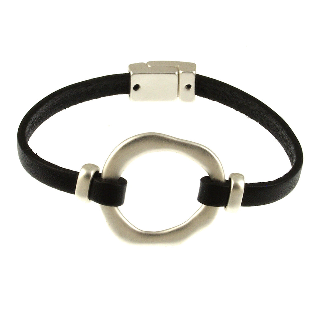 Magnetic Closure Black and Silver Bow Twist Tie Faux Leather Bracelet